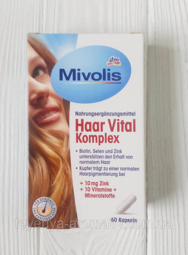 Вітамінний комплекс для волосся Mivolis Haar Vital Komplex 60 капсул (Німеччина) — комплексна підтримка для здорового волосся