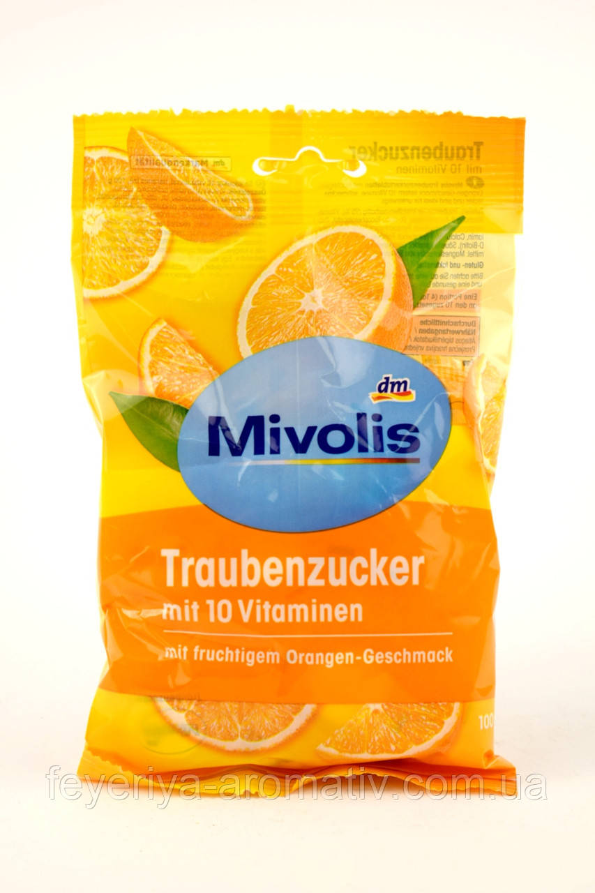 Декстрозні цукерки 10 вітамінів без цукру зі смаком апельсину Mivolis 100 г Німеччина